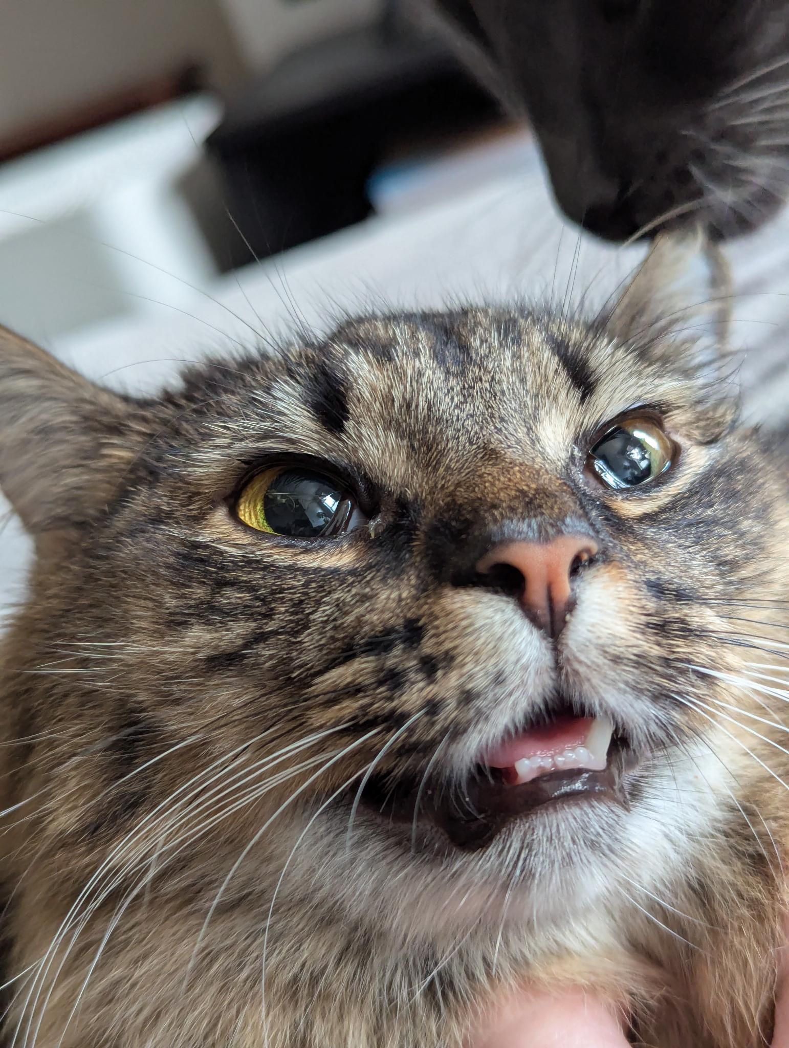 “I’m late! I’m late! For a very important newsletter!” I thought to myself as life decided I had other plans this week. Many deadlines have snuck up on me right as one of my cats suddenly needed two dental surgeries in two weeks. Here she is after surgery #2 (she’s doing great in her recovery, thankfully!):