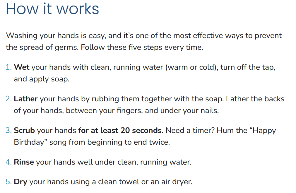 The CDC’s 5 steps to proper handwashing.